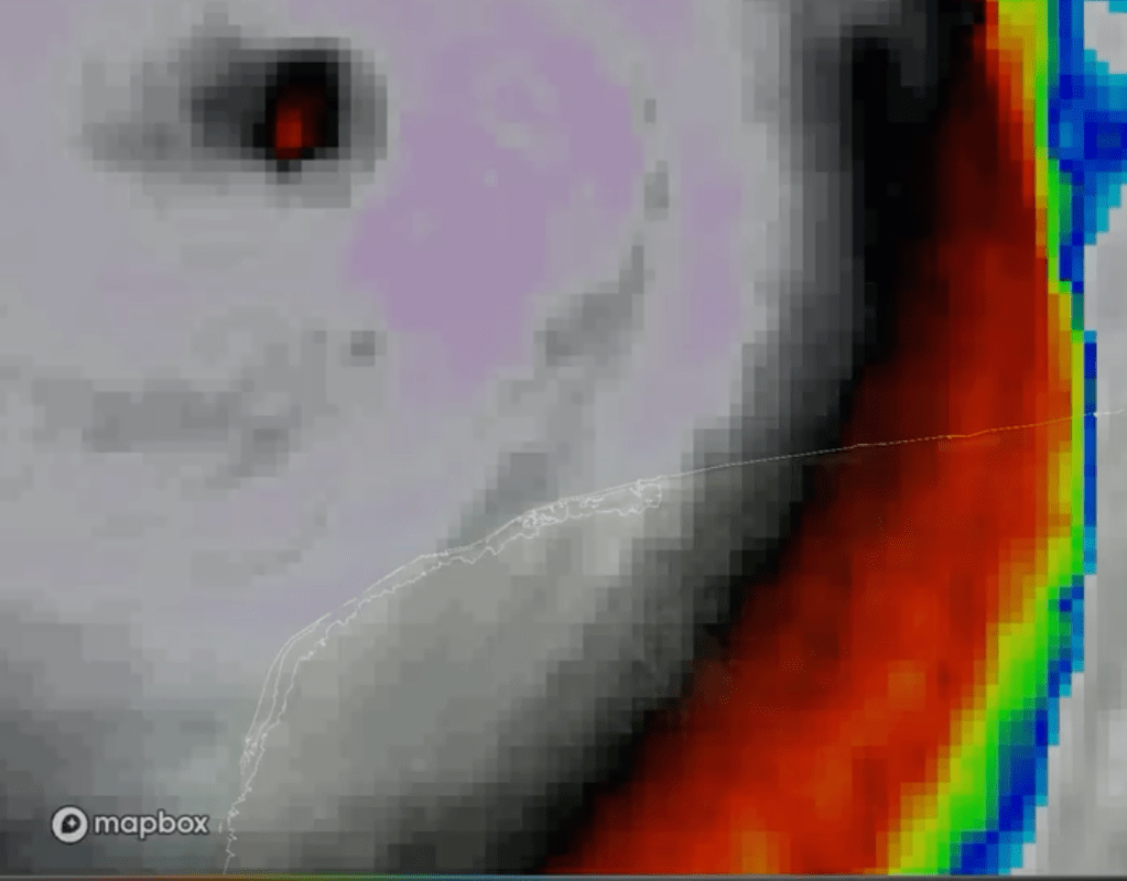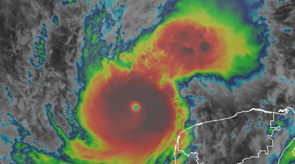 Closest approach to Mexico (~35 miles). Extreme tropical thunderstorms lash the Yucatán.