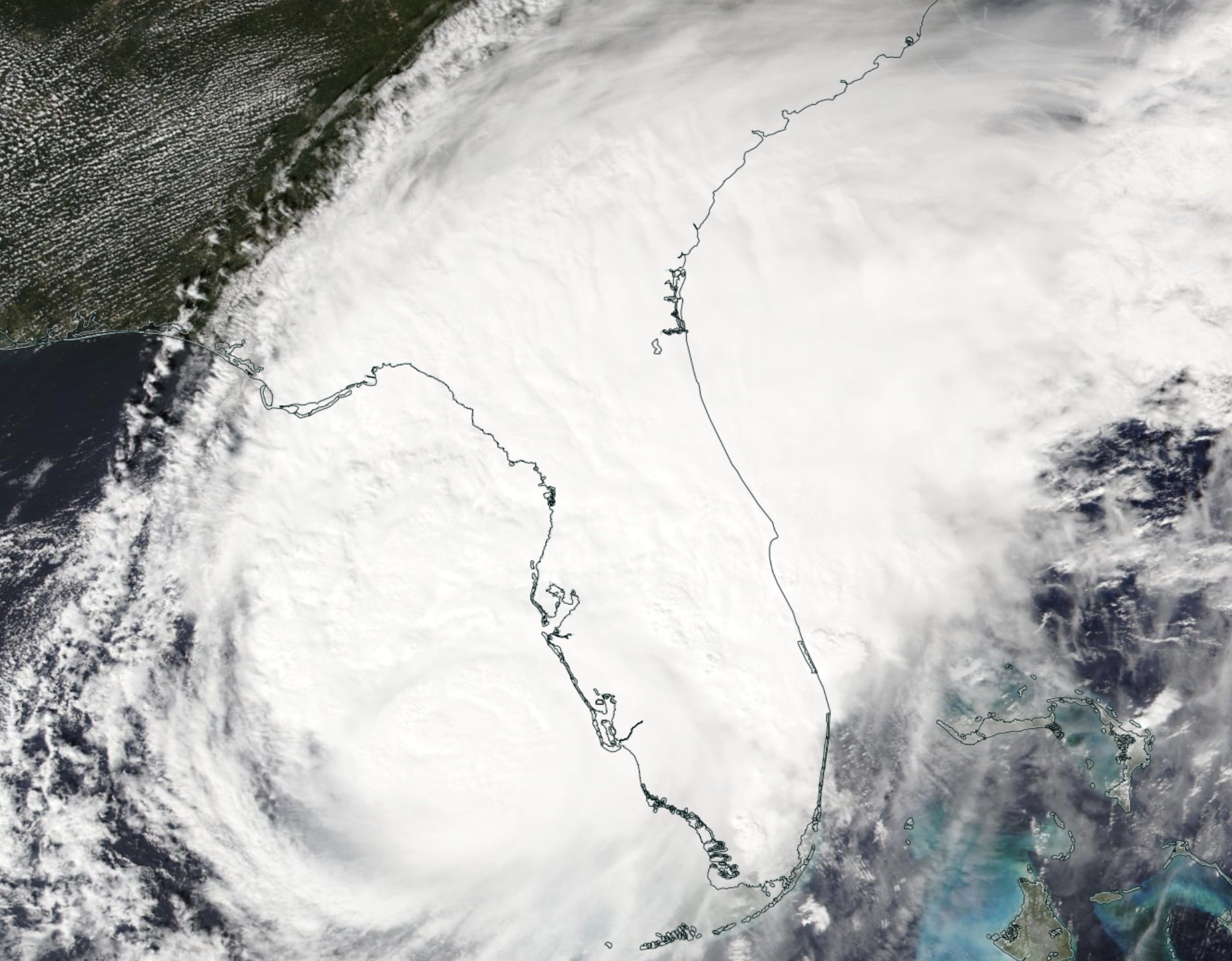 Wind gust of 107 mph recorded in Venice, FL. Storm surge peaks at 8+ ft. near Sarasota. Urban rain-flooding reported in Tampa and St. Petersburg.