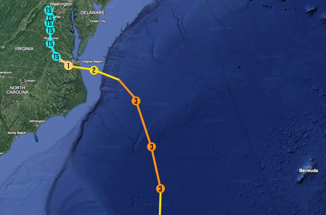 This is a fictional story that regards a theoretical Hurricane. The following scenario is derived from historical research and realistic data points, and is intended to present a dramatized version of events that may transpire from a possible worst-case-scenario Hurricane landfall in the Mid-Atlantic states of the U.S. East Coast. The purpose of this newsletter is to spread awareness of the danger communities along vulnerable coastlines (that have yet to be hit by a major tropical cyclone impact) with regards to the reasonable worst case scenario they may face from a tropical cyclone. No fictional characters in this episode are intended to represent real persons, unless explicitly stated by name. Additionally, this piece uses AI generated images. However, NO writing material is written by AI. It is and always will be written by myself, the author.