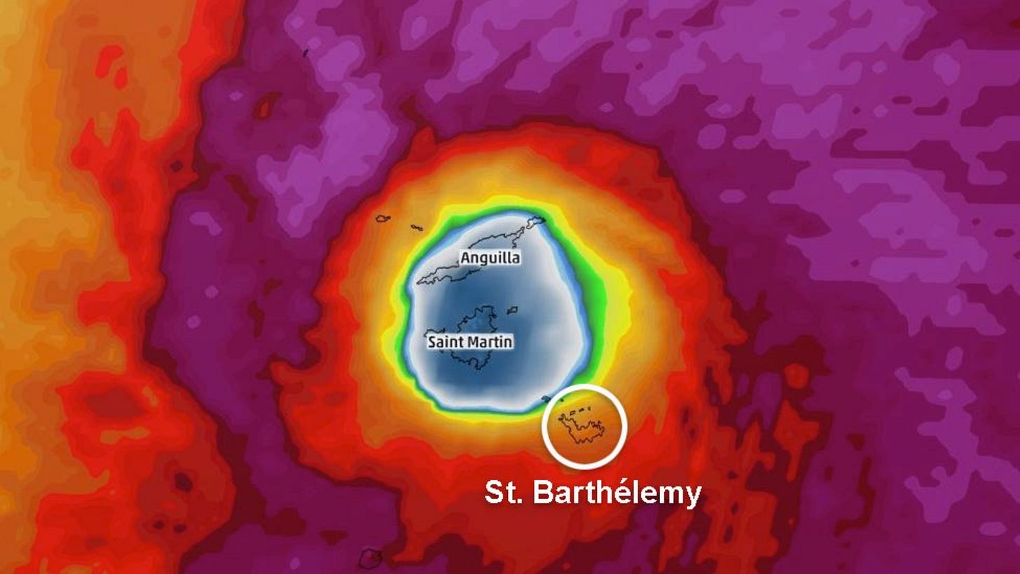 Of the above several dozen islands listed, the trio in the most immediate danger were the overseas European territories of St. Martin/Sint Maarten, St. Barthélemy, and Anguilla. It was here, where Irma’s hellacious core was forecast to churn through next:
