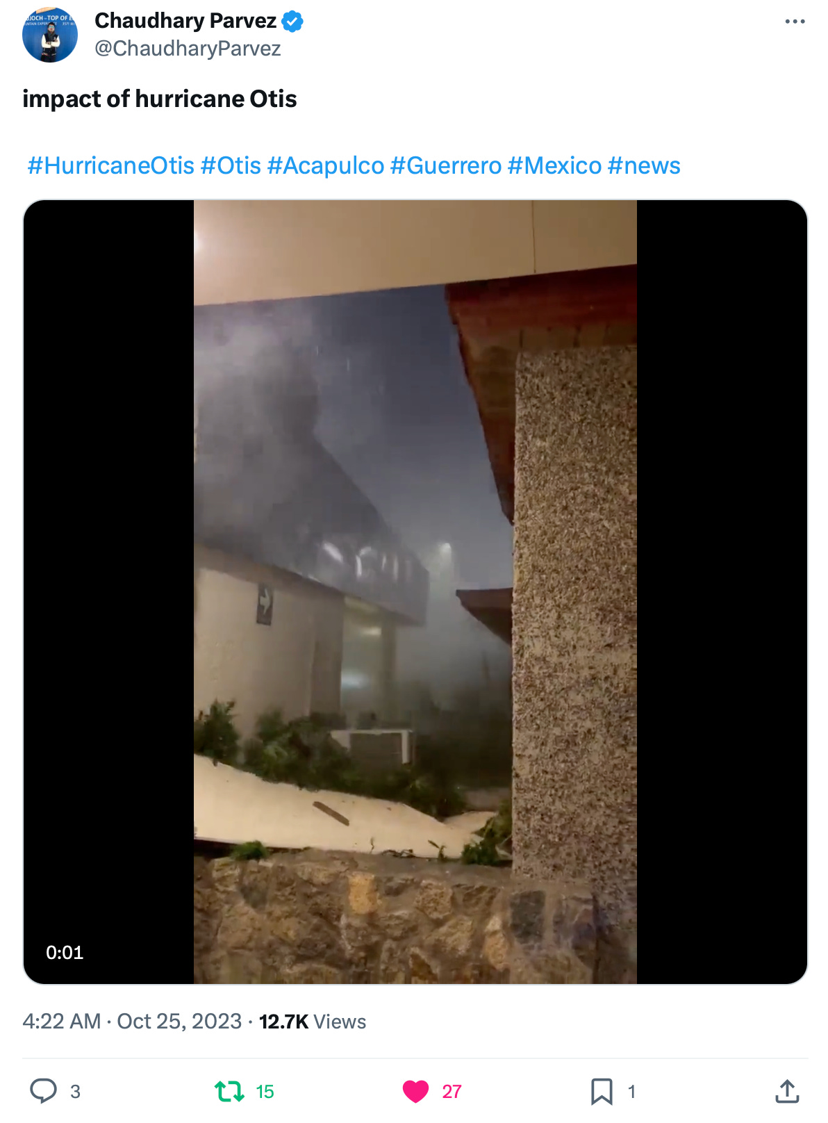 Hurricane Otis made landfall at 1:25 am CDT, October 25th, 2023, 5 miles immediately south of Acapulco, Mexico.