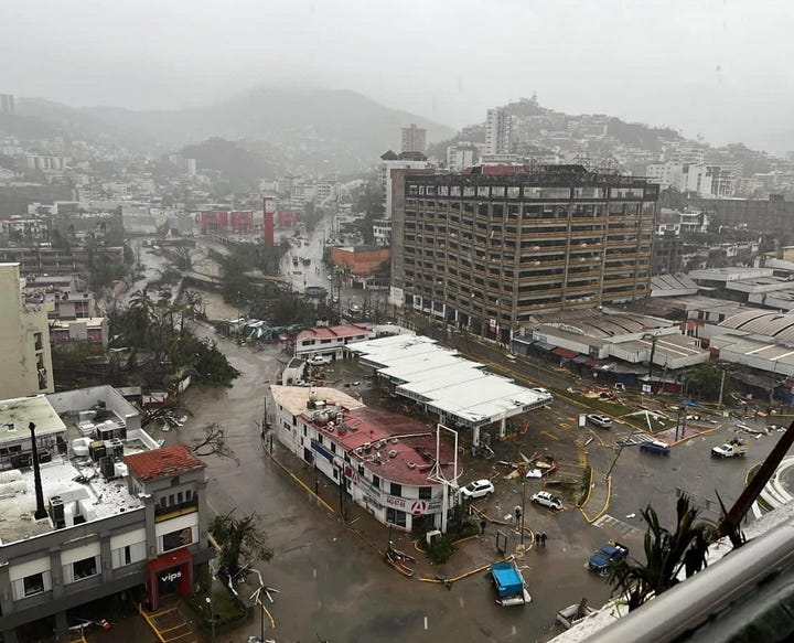 It’s November the 13th, 2023, in the city of Acapulco, Mexico. The palm trees, they rustle softly; the Pacific Ocean, she laps quietly up the beach with joy. The morning shines with bliss—but next to nobody here feels the same. The sprawling vacation metropolis is now a derelict, tumbledown nightmare, ripped apart and tossed into the infernal wind without mercy or courtesy.